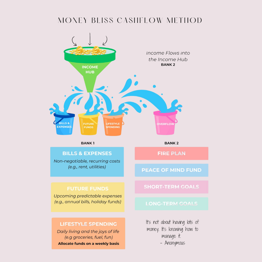 You can grab my [Money Bliss Cashflow Cheatsheet here] to learn exactly how to set this up for yourself.
